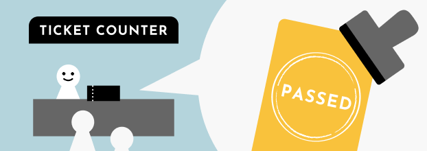 - 当日、受付にてチケット画面のご提示で電子スタンプをPON!と押します!